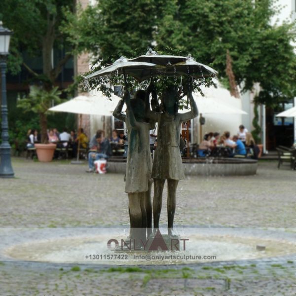 Life size outdoor bronze fountain child sculpture