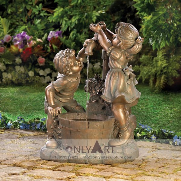 Bronze children playing fountain sculpture garden decoration
