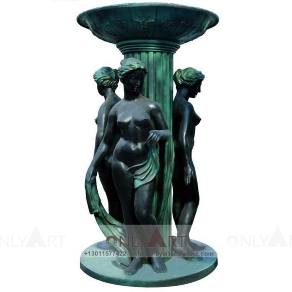 Bronze woman fountain sculpture garden decoration