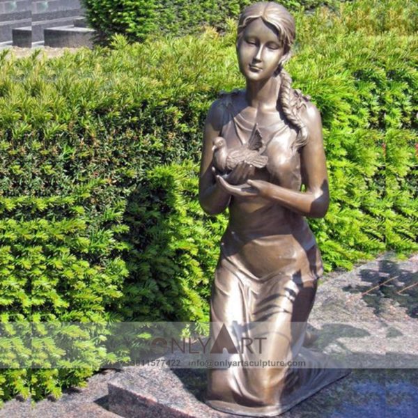 Bronze maiden holding pot sculpture garden decoration
