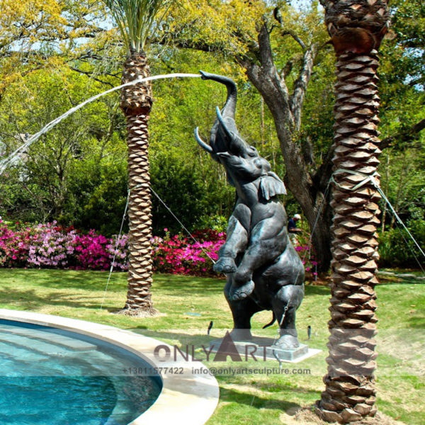 Large outdoor bronze elephant fountain sculpture