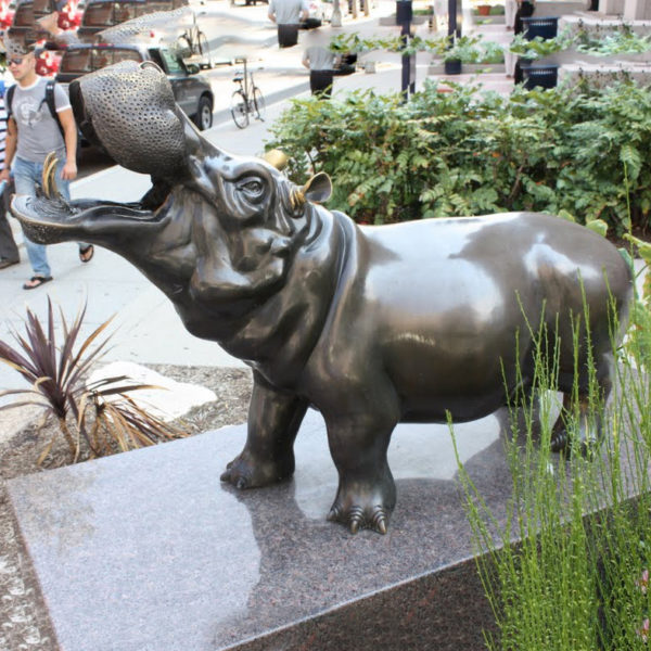 Life size cartoon animal hippo bronze sculpture