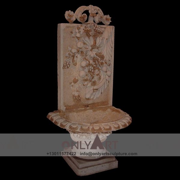 Stone Wall Waterfall Fountains With Flower Sculpture