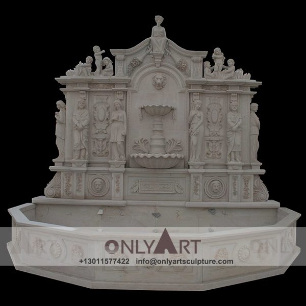 Stone Antique Wall Fountain With Lion Head Sculpture