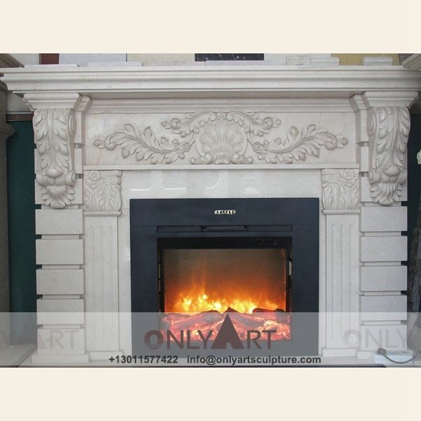 Marble fireplace ; Stone sculpture ; Fireplace sculpture ; Hotel adornment ; Stone fireplace ; off white ; Minimalist ; Indoor and Quality European style marble fireplace