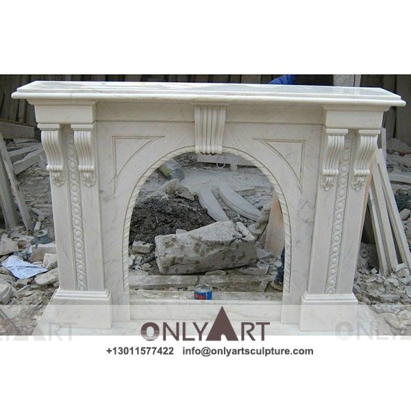 Marble fireplace ; Stone sculpture ; Fireplace sculpture ; Hotel adornment ; Stone fireplace ; off white ; Minimalist ; Hand sculpture marble fireplace and mantel