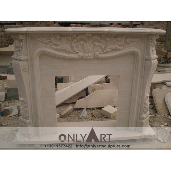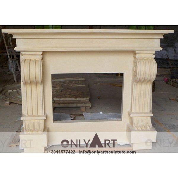 Marble fireplace ; Stone sculpture ; Fireplace sculpture ; Hotel adornment ; Stone fireplace ; off white ; Minimalist ; Classic American Style Natural Stone Marble Fireplace