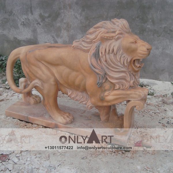 Marble Lion Statue with Shield Decor Sculpture