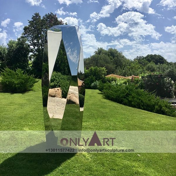 Modern geometric design of colorful stainless steel sculptures